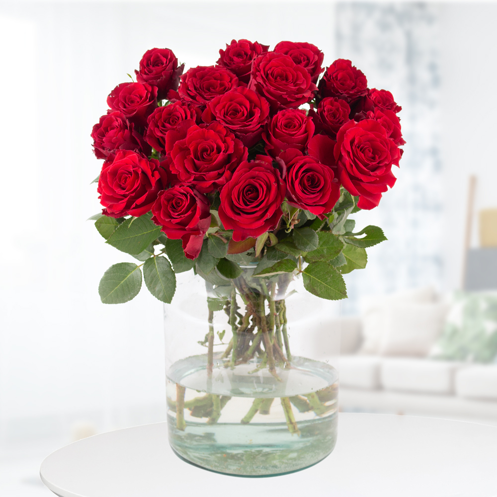 20 Rosen für Verliebte Dieser Rosenstrauß besteht aus 20 tiefroten wunderschönen Rosen, die einen zarten Duft versprühen. Rote Rosen sind ein beliebtes Geschenk zum Geburtstag des Partners, denn keine andere Blume steht für Liebe und Respekt wie die rote Rose. Die Königin der Blumen sieht in einer hohen Vase arrangiert wunderschön aus und ist ein toller Hingucker. Mit unserer kostenlosen Grußkarte wird dieser Blumenstrauß zu einem passenden Geschenk für jeden Anlass. Das Angebot ist nicht mit anderen Aktionen oder Gutscheinen kombinierbar.